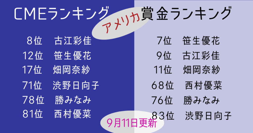LPGA 【2024】アメリカ女子プロゴルフツアー CME・賞金ランキング